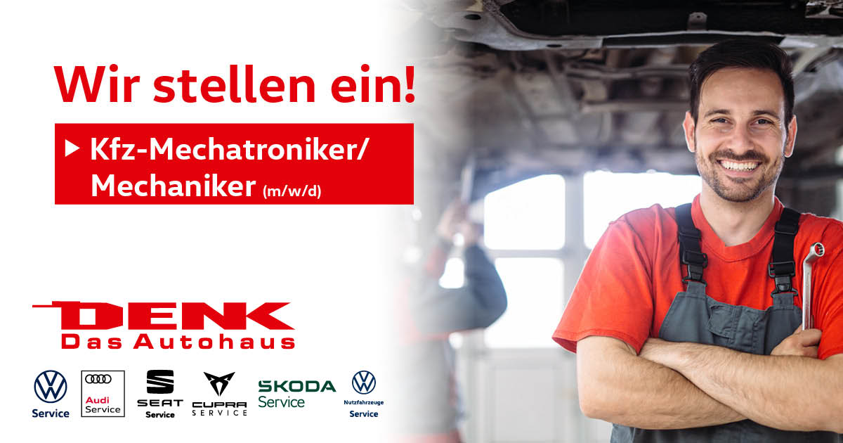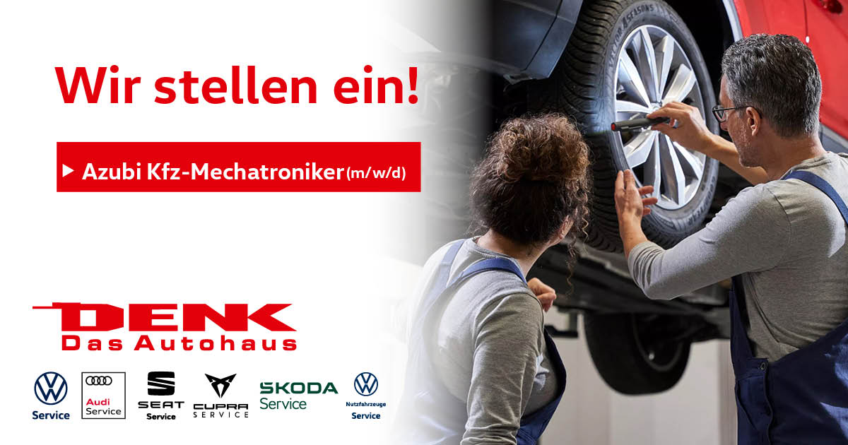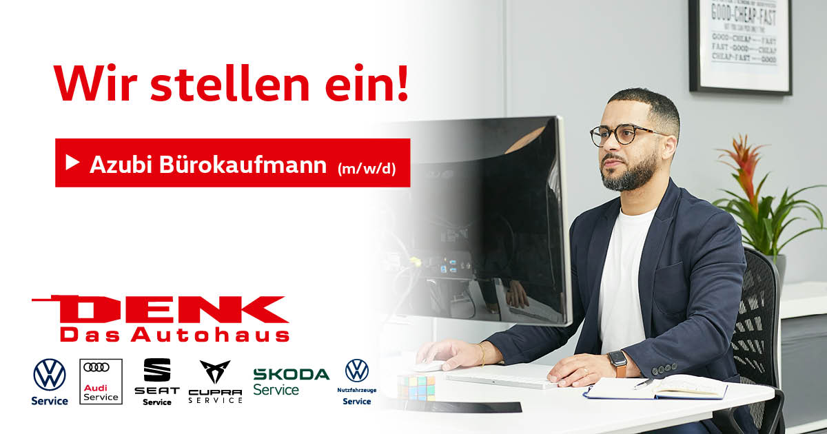 Werden Sie Teil unseres engagierten Teams in einem Traditionsunternehmen: Seit über 90 Jahren steht das Autohaus Denk für Kompetenz, Verlässlichkeit und persönliche Betreuung – ob Neuwagen, Gebrauchtwagen oder Service rund ums Fahrzeug.